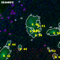 Black segments are analyzed here. Roll mouse over color images to view segments. Best viewed in a wide browser window (1200 pixels or more). Download SED & P(z) plots to view larger versions.