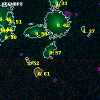 Black segments are analyzed here. Roll mouse over color images to view segments. Best viewed in a wide browser window (1200 pixels or more). Download SED & P(z) plots to view larger versions.