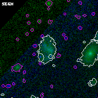 Black segments are analyzed here. Roll mouse over color images to view segments. Best viewed in a wide browser window (1200 pixels or more). Download SED & P(z) plots to view larger versions.
