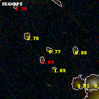 Object #1040   x,y = (2675, 1848)   RA, Dec = (06:00:09.888, -20:09:01.44) = (90.04120, -20.15040)   BPZ = 0.767 [0.183--3.847]   type = 8.10 (SB1_B10 - SB2_B10)   stellarity = 0.00   chisq2 = 0.19   ODDS = 0.16   z_cluster = 0.460
