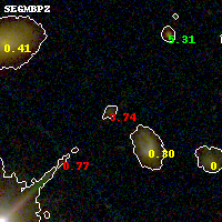Black segments are analyzed here. Roll mouse over color images to view segments. Best viewed in a wide browser window (1200 pixels or more). Download SED & P(z) plots to view larger versions.
