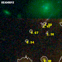 Black segments are analyzed here. Roll mouse over color images to view segments. Best viewed in a wide browser window (1200 pixels or more). Download SED & P(z) plots to view larger versions.