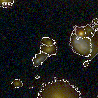 Black segments are analyzed here. Roll mouse over color images to view segments. Best viewed in a wide browser window (1200 pixels or more). Download SED & P(z) plots to view larger versions.