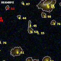 Black segments are analyzed here. Roll mouse over color images to view segments. Best viewed in a wide browser window (1200 pixels or more). Download SED & P(z) plots to view larger versions.
