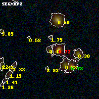 Black segments are analyzed here. Roll mouse over color images to view segments. Best viewed in a wide browser window (1200 pixels or more). Download SED & P(z) plots to view larger versions.