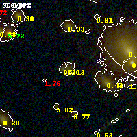 Black segments are analyzed here. Roll mouse over color images to view segments. Best viewed in a wide browser window (1200 pixels or more). Download SED & P(z) plots to view larger versions.