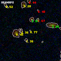 Black segments are analyzed here. Roll mouse over color images to view segments. Best viewed in a wide browser window (1200 pixels or more). Download SED & P(z) plots to view larger versions.