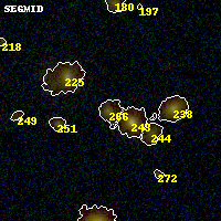 Black segments are analyzed here. Roll mouse over color images to view segments. Best viewed in a wide browser window (1200 pixels or more). Download SED & P(z) plots to view larger versions.