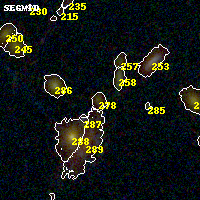 Black segments are analyzed here. Roll mouse over color images to view segments. Best viewed in a wide browser window (1200 pixels or more). Download SED & P(z) plots to view larger versions.