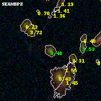 Black segments are analyzed here. Roll mouse over color images to view segments. Best viewed in a wide browser window (1200 pixels or more). Download SED & P(z) plots to view larger versions.