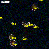 Black segments are analyzed here. Roll mouse over color images to view segments. Best viewed in a wide browser window (1200 pixels or more). Download SED & P(z) plots to view larger versions.