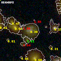 Black segments are analyzed here. Roll mouse over color images to view segments. Best viewed in a wide browser window (1200 pixels or more). Download SED & P(z) plots to view larger versions.