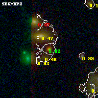 Black segments are analyzed here. Roll mouse over color images to view segments. Best viewed in a wide browser window (1200 pixels or more). Download SED & P(z) plots to view larger versions.