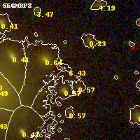 Black segments are analyzed here. Roll mouse over color images to view segments. Best viewed in a wide browser window (1200 pixels or more). Download SED & P(z) plots to view larger versions.
