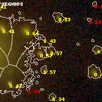 Black segments are analyzed here. Roll mouse over color images to view segments. Best viewed in a wide browser window (1200 pixels or more). Download SED & P(z) plots to view larger versions.
