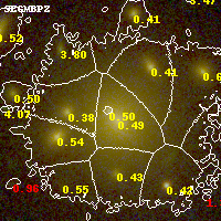 Black segments are analyzed here. Roll mouse over color images to view segments. Best viewed in a wide browser window (1200 pixels or more). Download SED & P(z) plots to view larger versions.