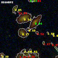 Black segments are analyzed here. Roll mouse over color images to view segments. Best viewed in a wide browser window (1200 pixels or more). Download SED & P(z) plots to view larger versions.