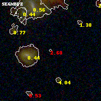 Black segments are analyzed here. Roll mouse over color images to view segments. Best viewed in a wide browser window (1200 pixels or more). Download SED & P(z) plots to view larger versions.