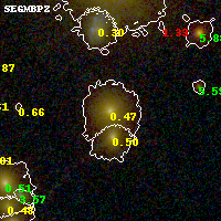 Black segments are analyzed here. Roll mouse over color images to view segments. Best viewed in a wide browser window (1200 pixels or more). Download SED & P(z) plots to view larger versions.