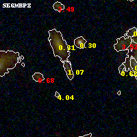 Black segments are analyzed here. Roll mouse over color images to view segments. Best viewed in a wide browser window (1200 pixels or more). Download SED & P(z) plots to view larger versions.