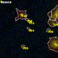 Black segments are analyzed here. Roll mouse over color images to view segments. Best viewed in a wide browser window (1200 pixels or more). Download SED & P(z) plots to view larger versions.