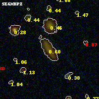 Object #937   x,y = (3285, 2030)   RA, Dec = (06:00:07.296, -20:08:50.28) = (90.03040, -20.14730)   BPZ = 0.602 [0.477--0.675]   type = 3.30 (Ell5_A_0 - Ell4_A_0)   stellarity = 0.03   chisq2 = 0.02   ODDS = 0.81   z_cluster = 0.460