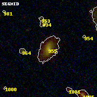 Black segments are analyzed here. Roll mouse over color images to view segments. Best viewed in a wide browser window (1200 pixels or more). Download SED & P(z) plots to view larger versions.