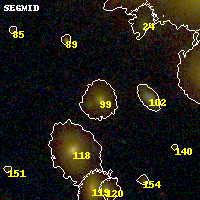 Black segments are analyzed here. Roll mouse over color images to view segments. Best viewed in a wide browser window (1200 pixels or more). Download SED & P(z) plots to view larger versions.