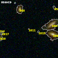Black segments are analyzed here. Roll mouse over color images to view segments. Best viewed in a wide browser window (1200 pixels or more). Download SED & P(z) plots to view larger versions.