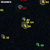 Black segments are analyzed here. Roll mouse over color images to view segments. Best viewed in a wide browser window (1200 pixels or more). Download SED & P(z) plots to view larger versions.