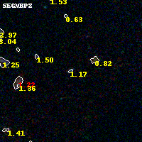Black segments are analyzed here. Roll mouse over color images to view segments. Best viewed in a wide browser window (1200 pixels or more). Download SED & P(z) plots to view larger versions.