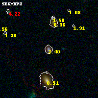 Black segments are analyzed here. Roll mouse over color images to view segments. Best viewed in a wide browser window (1200 pixels or more). Download SED & P(z) plots to view larger versions.