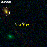 Black segments are analyzed here. Roll mouse over color images to view segments. Best viewed in a wide browser window (1200 pixels or more). Download SED & P(z) plots to view larger versions.