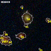 Black segments are analyzed here. Roll mouse over color images to view segments. Best viewed in a wide browser window (1200 pixels or more). Download SED & P(z) plots to view larger versions.