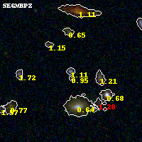 Black segments are analyzed here. Roll mouse over color images to view segments. Best viewed in a wide browser window (1200 pixels or more). Download SED & P(z) plots to view larger versions.