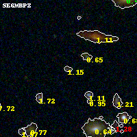 Black segments are analyzed here. Roll mouse over color images to view segments. Best viewed in a wide browser window (1200 pixels or more). Download SED & P(z) plots to view larger versions.