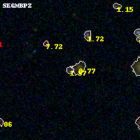 Black segments are analyzed here. Roll mouse over color images to view segments. Best viewed in a wide browser window (1200 pixels or more). Download SED & P(z) plots to view larger versions.