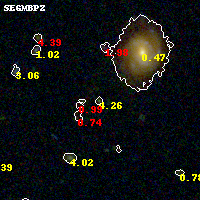 Black segments are analyzed here. Roll mouse over color images to view segments. Best viewed in a wide browser window (1200 pixels or more). Download SED & P(z) plots to view larger versions.