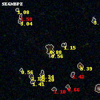 Black segments are analyzed here. Roll mouse over color images to view segments. Best viewed in a wide browser window (1200 pixels or more). Download SED & P(z) plots to view larger versions.