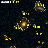 Black segments are analyzed here. Roll mouse over color images to view segments. Best viewed in a wide browser window (1200 pixels or more). Download SED & P(z) plots to view larger versions.