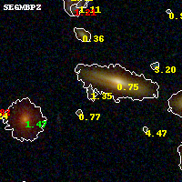 Black segments are analyzed here. Roll mouse over color images to view segments. Best viewed in a wide browser window (1200 pixels or more). Download SED & P(z) plots to view larger versions.