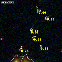 Black segments are analyzed here. Roll mouse over color images to view segments. Best viewed in a wide browser window (1200 pixels or more). Download SED & P(z) plots to view larger versions.