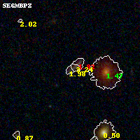Black segments are analyzed here. Roll mouse over color images to view segments. Best viewed in a wide browser window (1200 pixels or more). Download SED & P(z) plots to view larger versions.