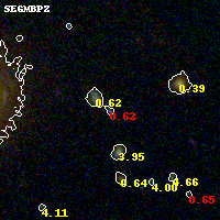 Black segments are analyzed here. Roll mouse over color images to view segments. Best viewed in a wide browser window (1200 pixels or more). Download SED & P(z) plots to view larger versions.