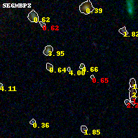 Black segments are analyzed here. Roll mouse over color images to view segments. Best viewed in a wide browser window (1200 pixels or more). Download SED & P(z) plots to view larger versions.