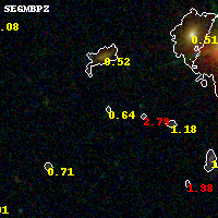 Black segments are analyzed here. Roll mouse over color images to view segments. Best viewed in a wide browser window (1200 pixels or more). Download SED & P(z) plots to view larger versions.