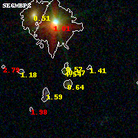 Black segments are analyzed here. Roll mouse over color images to view segments. Best viewed in a wide browser window (1200 pixels or more). Download SED & P(z) plots to view larger versions.