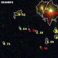 Black segments are analyzed here. Roll mouse over color images to view segments. Best viewed in a wide browser window (1200 pixels or more). Download SED & P(z) plots to view larger versions.