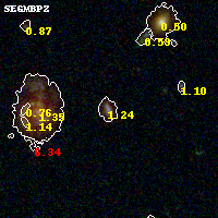 Black segments are analyzed here. Roll mouse over color images to view segments. Best viewed in a wide browser window (1200 pixels or more). Download SED & P(z) plots to view larger versions.