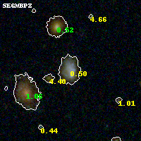 Black segments are analyzed here. Roll mouse over color images to view segments. Best viewed in a wide browser window (1200 pixels or more). Download SED & P(z) plots to view larger versions.